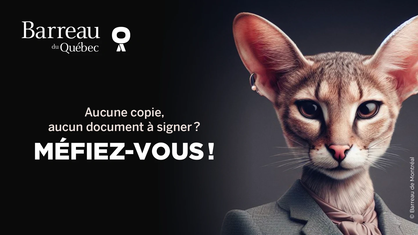 Faites preuve de prudence! En toutes circonstances, lorsque vous envisagez de solliciter un avocat que vous ne connaissez pas, la bonne pratique consiste à vérifier si cette personne est bien membre en règle du Barreau du Québec et si elle dispose du droit d’exercer la profession d’avocat en contactant le Barreau.
