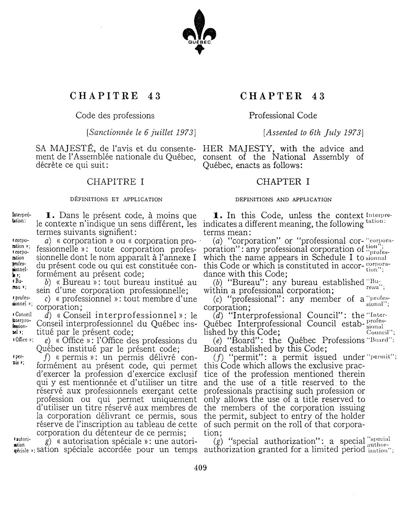 Entrée en vigueur du Code des professions. La Loi sur le Barreau doit dès lors être modifiée pour s’harmoniser avec le Code.